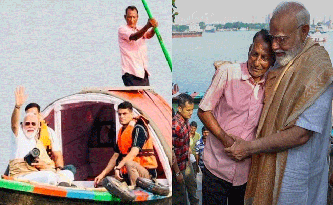 पीएम मोदी ने हुगली नदी में नाव की सवारी की, नाव चलाने वाले को गले लगाया