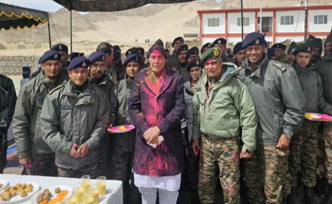 राजनाथ सिंह ने लेह में तैनात जवानों के साथ मनाई होली, बोले- हर देशवासी को सशस्त्र बलों पर गर्व