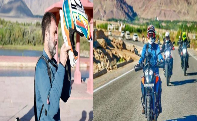 लद्दाख: अलग अंदाज में नजर आए राहुल गांधी, पेंगोंग झील तक दौड़ाई बाइक