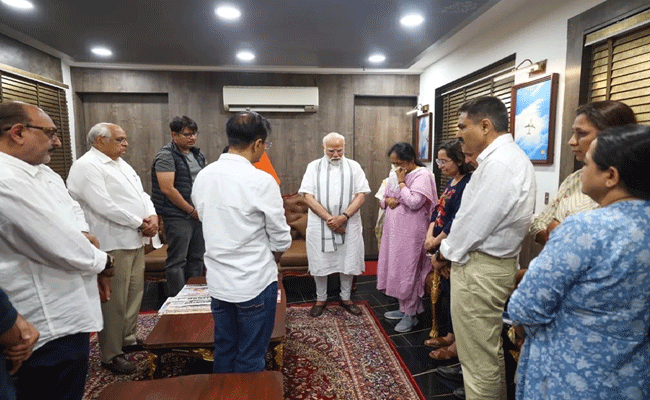विजय रुपाणी के परिवार से मिले पीएम मोदी, पूर्व सीएम के निधन पर जताया शोक