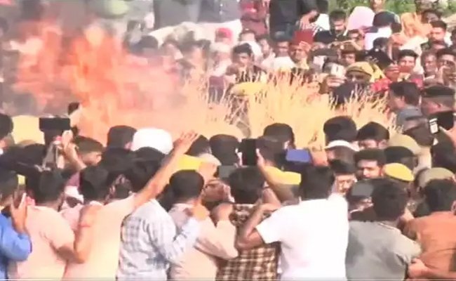 नेताजी पंचतत्व में विलीन, अखिलेश यादव ने दी मुखाग्नि