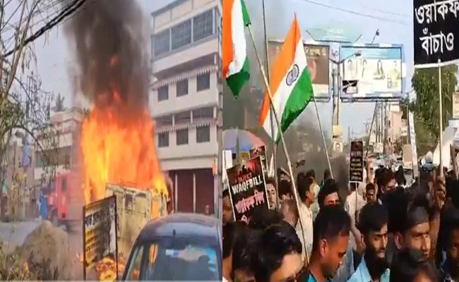 पश्चिम बंगाल: मुर्शिदाबाद में वक्फ कानून के खिलाफ हिंसक प्रदर्शन, उपद्रवियों ने पुलिस वाहनों में लगाई आग