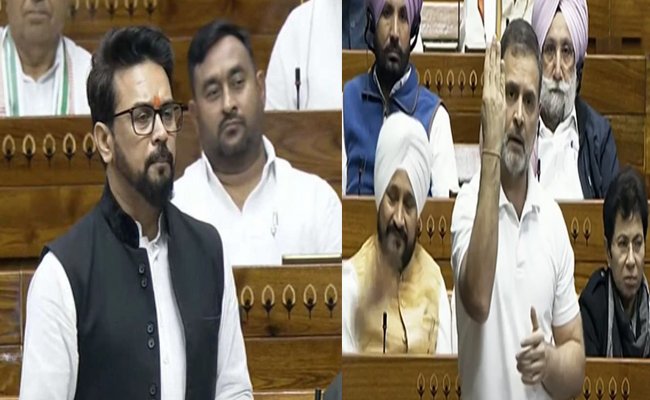 लोकसभा में राहुल गांधी पर अनुराग ठाकुर का पलटवार, बोले- अंगूठा काटने की बात करने वालों के राज में सिखों के गले काटे