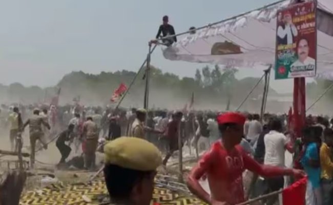 आजमगढ़ में अखिलेश यादव की जनसभा में मची भगदड़, पुलिस ने किया लाठीचार्ज