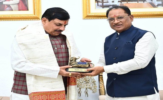 मुख्यमंत्री श्री विष्णु देव साय ने मध्यप्रदेश के मुख्यमंत्री डॉ. मोहन यादव का अपने निवास में आत्मीय स्वागत किया