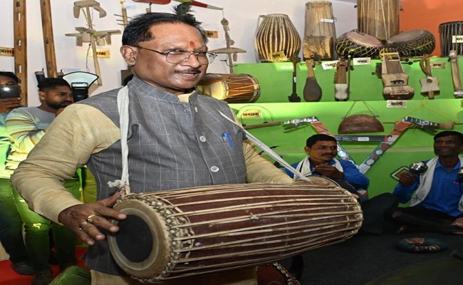 मांदर बजाते हुए कलाकारों के साथ थिरके मुख्यमंत्री श्री साय