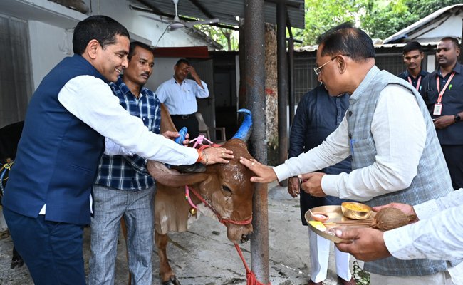 मुख्यमंत्री श्री विष्णु देव साय ने गोवर्धन पूजा के अवसर पर की गौ वंश की पूजा-अर्चना