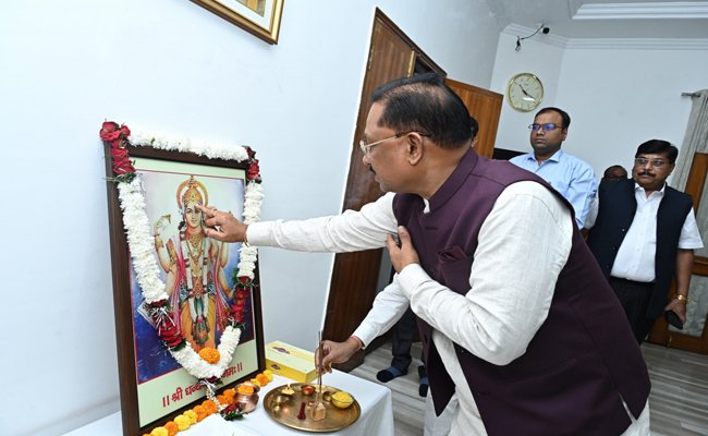 मुख्यमंत्री ने भगवान धन्वंतरि की पूजा अर्चना कर प्रदेशवासियों के लिए माँगा आरोग्य का वरदान