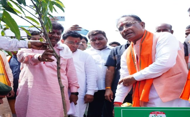 मुख्यमंत्री श्री विष्णु देव साय ने एक पेड़ मां के नाम अभियान के अंतर्गत लगाया केसर आम का पौधा