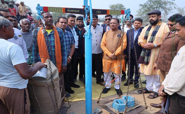 मुख्यमंत्री श्री विष्णुदेव साय ने पुसौर धान खरीदी केंद्र का किया औचक निरीक्षण