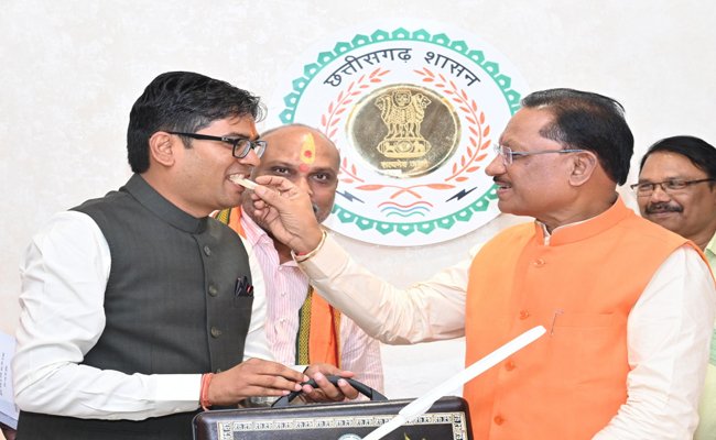 मुख्यमंत्री ने छत्तीसगढ़ के अमृत काल के नींव का बजट पेश करने पर वित्त मंत्री का मुंह मीठा कराया