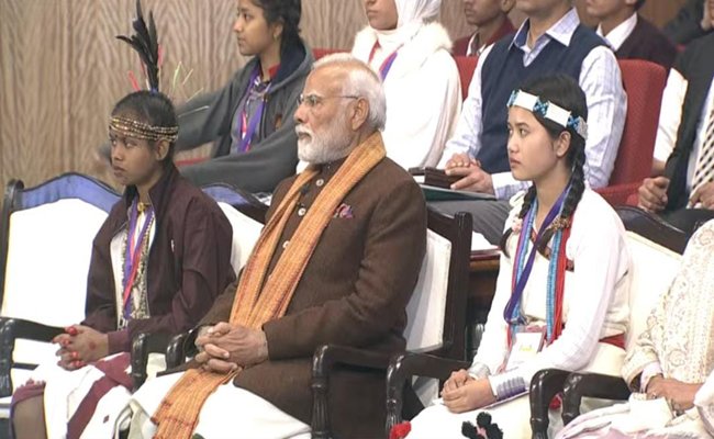 परीक्षा पे चर्चा कार्यक्रम में प्रधानमंत्री श्री नरेंद्र मोदी ने सुकमा की छात्रा उमेश्वरी को बिठाया अपने पास