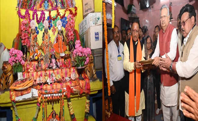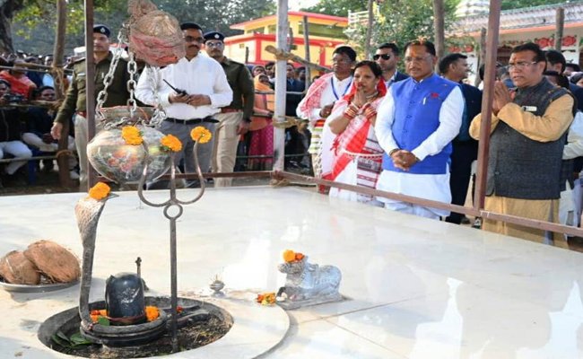 मुख्यमंत्री श्री विष्णु देव साय ने सपत्नीक पमशाला के शिव जी व राधा-कृष्ण मंदिर पहुंचकर किया दर्शन
