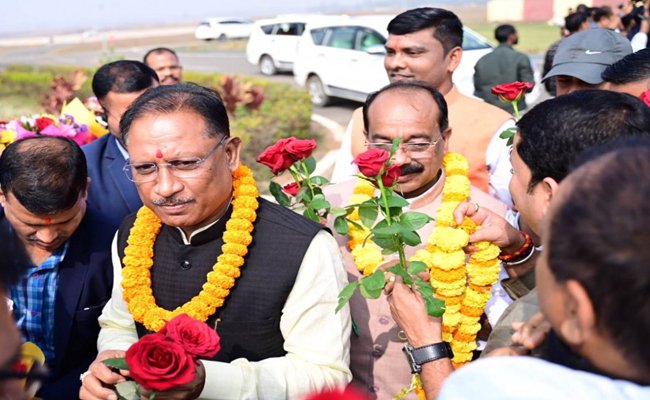 मुख्यमंत्री श्री विष्णुदेव साय पहुंचे अंबिकापुर, जनप्रतिनिधियों एवं अधिकारियों ने किया स्वागत