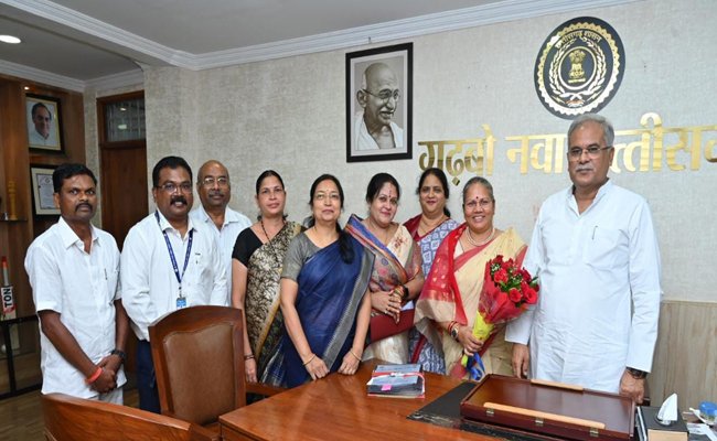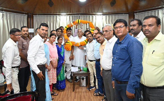 मुख्यमंत्री का छत्तीसगढ़ संयुक्त शिक्षक संघ ने गजमाला पहनाकर जताया आभार