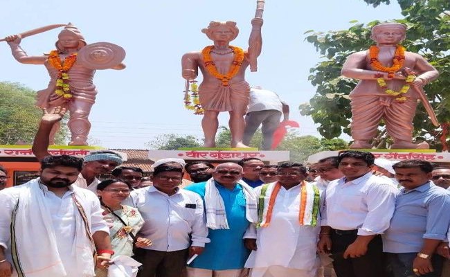 अंतागढ़ में रानी दुर्गावती, गुंडाधुर और वीर गैंद सिंह की मूर्ति का उद्योग मंत्री लखमा ने किया अनावरण