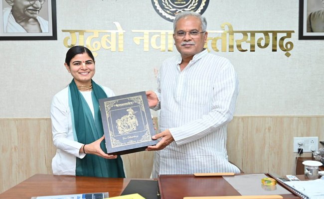 मुख्यमंत्री श्री बघेल से सुप्रसिद्ध कथावाचक देवी चित्रलेखा ने की सौजन्य मुलाकात