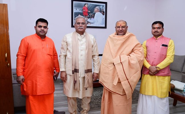 महामंडेश्वर पूज्य स्वामी यतीन्द्रानन्द गिरि जी महाराज से मुख्यमंत्री श्री बघेल ने आशीर्वाद प्राप्त किया