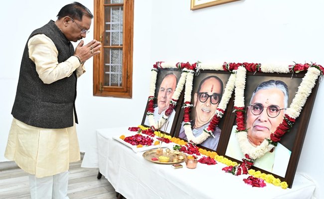 मुख्यमंत्री श्री विष्णुदेव साय ने श्री कुशाभाऊ ठाकरे और श्री सुंदर लाल पटवा की पुण्यतिथि तथा श्री अरुण जेटली की जयंती पर उन्हें किया नमन