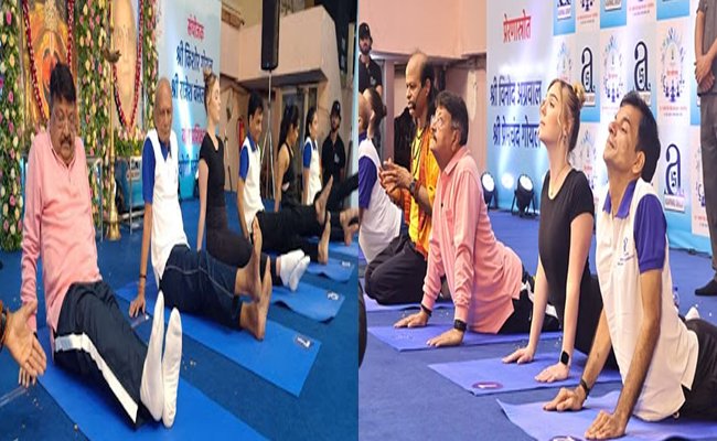 मंत्री श्री कैलाश विजयवर्गीय ने नागरिकों और बच्चों के साथ किया योग