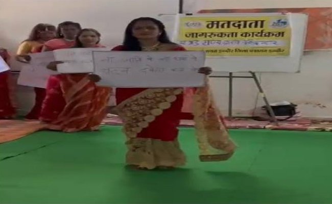 मतदान का प्रतिशत बढ़ाने के लिए महिलाओं का रोचक प्रयास- मतदान करने के संदेशों के साथ किया रैम्प वॉक