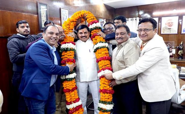 मुख्यमंत्री डॉ. यादव का विशाल माला पहनाकर किया अभिवादन