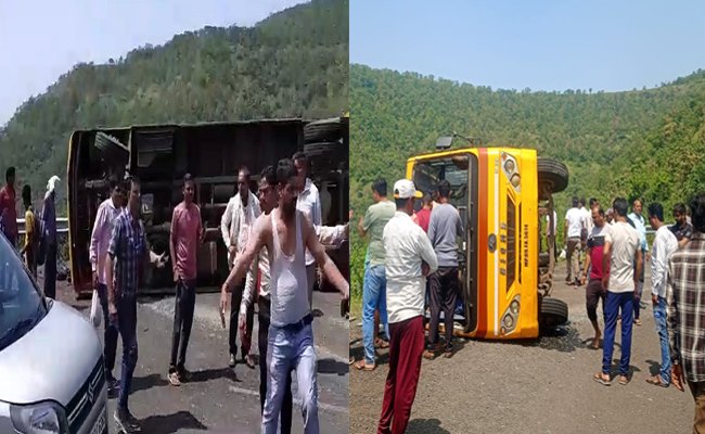इंदौर: महू के जाम गेट पर पलटी स्कूली बच्चों से भरी बस, कई बच्चे घायल, 3 की हालत गंभीर