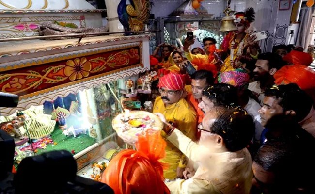 मुख्यमंत्री श्री चौहान पहुंचे श्री राधा कृष्ण मंदिर, शोभायात्रा में लिया हिस्सा