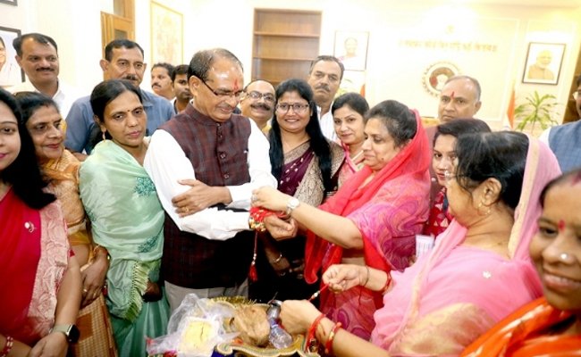 मुख्यमंत्री से मिलीं देवास जिले की लाड़ली बहनें, बांधी राखी