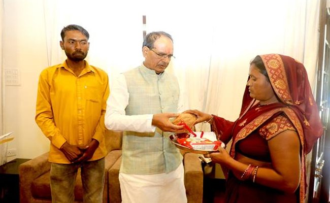 छतरपुर से पैदल भोपाल पहुँचे दंपत्ति का मुख्यमंत्री श्री चौहान ने किया सम्मान