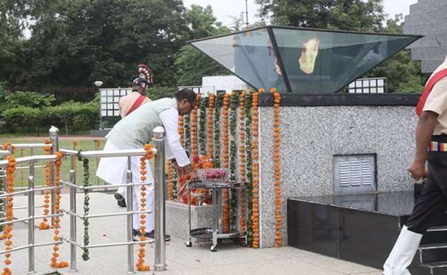 मुख्यमंत्री श्री चौहान ने शौर्य स्मारक स्थित शौर्य स्तंभ पर किया पुष्प-चक्र अर्पित