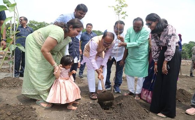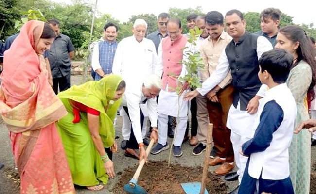 मुख्यमंत्री श्री चौहान ने पीपल, करंज और गुलमोहर के पौधे रोपे