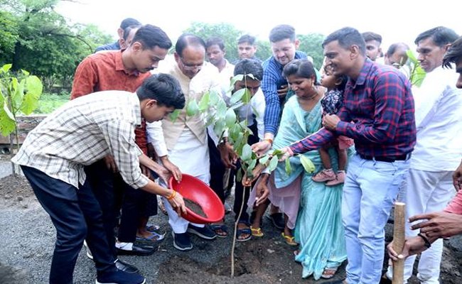 मुख्यमंत्री श्री चौहान ने बरगद, जामुन और कदम्ब के पौधे रोपे