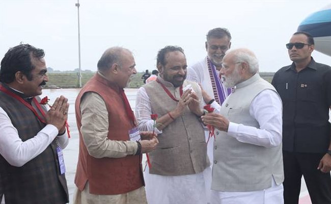 प्रधानमंत्री श्री नरेन्द्र मोदी का जबलपुर के डुमना विमानतल पर आत्मीय स्वागत
