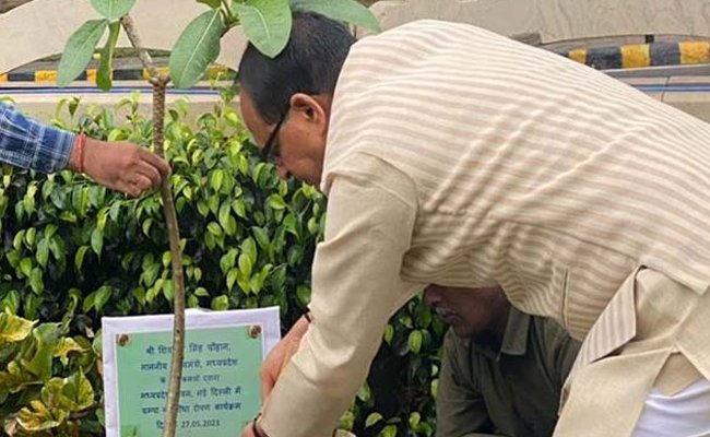 मुख्यमंत्री श्री चौहान ने नई दिल्ली में नवीन म.प्र. भवन परिसर में रोपा चंपा का पौधा