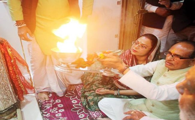मुख्यमंत्री श्री चौहान ने सपत्नीक मैहर में माँ शारदा जी के दर्शन कर पूजा-अर्चन की