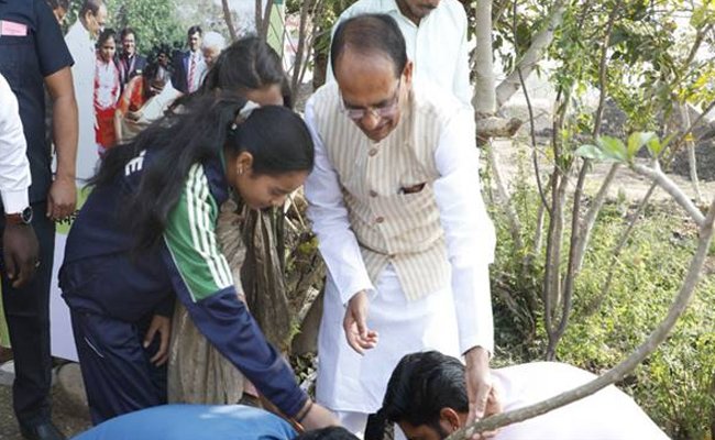 मुख्यमंत्री श्री चौहान ने पदक विजेता खिलाड़ियों के साथ पौधे लगाए