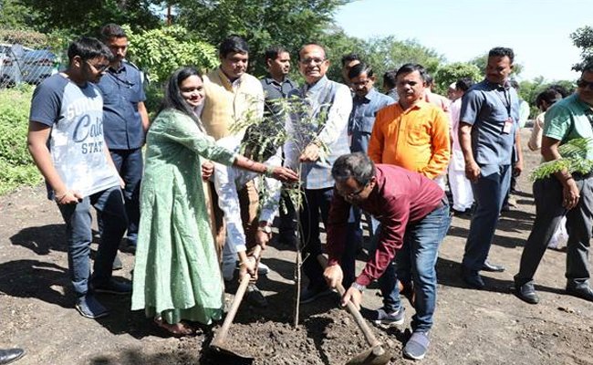 मुख्यमंत्री श्री चौहान ने किसान मोर्चा के सदस्यों के साथ पौध-रोपण किया