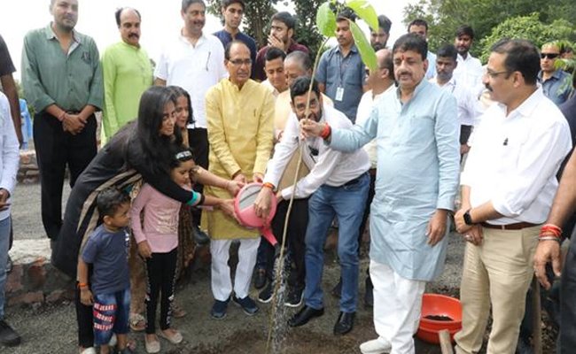 मुख्यमंत्री श्री चौहान ने करंज, पीपल और गुलमोहर के पौधे लगाए