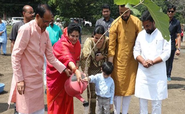 मुख्यमंत्री श्री चौहान ने करंज, बादाम और सागौन के पौधे लगाए