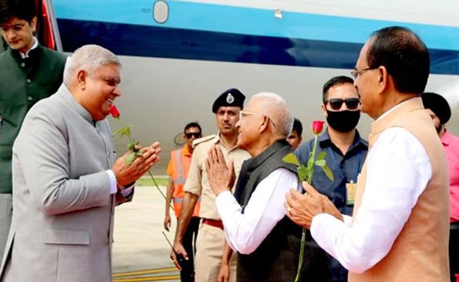 उप राष्ट्रपति श्री धनखड़ का जबलपुर में डुमना विमानतल पर आत्मीय स्वागत