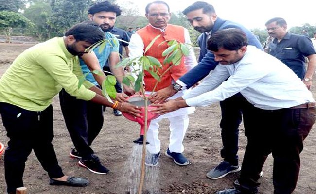 मुख्यमंत्री श्री चौहान ने पीपल, मौलश्री, गूलर और कचनार के पौधे लगाए
