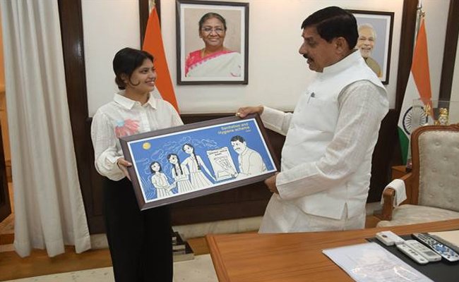 मुख्यमंत्री डॉ. यादव को गौरंगी शर्मा ने भेंट की पेंटिंग
