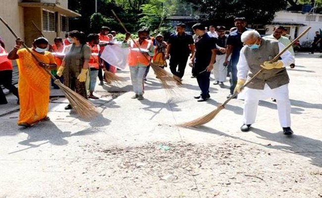 राज्यपाल श्री पटेल ने झाड़ू लगाकर दिया स्वच्छता का संदेश