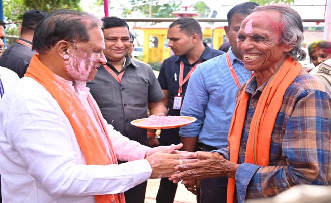 मुख्यमंत्री श्री विष्णुदेव साय ने अपने गृह ग्राम बगिया में ग्रामीणों संग हर्षोल्लास से मनाई होली