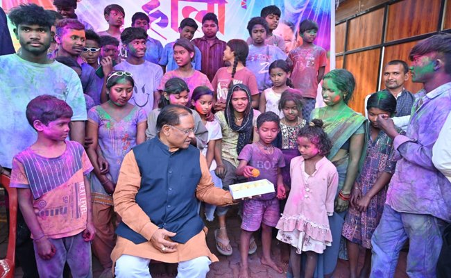 बगिया में बच्चों संग मुख्यमंत्री ने मनाई रंगों की होली