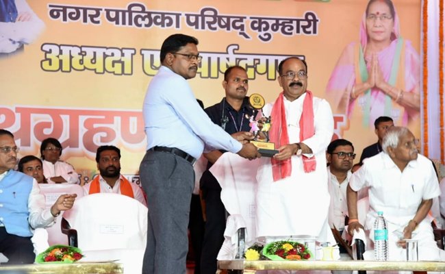 उप मुख्यमंत्री श्री अरुण साव के मुख्य आतिथ्य में कुम्हारी नगर पालिका के नवनिर्वाचित अध्यक्ष एवं पार्षदों का शपथ ग्रहण संपन्न
