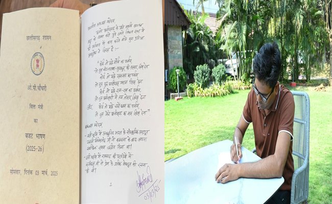 छत्तीसगढ़ में पहली बार हस्तलिखित बजट पेश, वित्त मंत्री ओपी चौधरी ने किए हस्ताक्षर