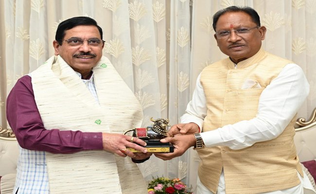 मुख्यमंत्री श्री विष्णुदेव साय ने केंद्रीय मंत्री श्री प्रहलाद जोशी का किया आत्मीय स्वागत