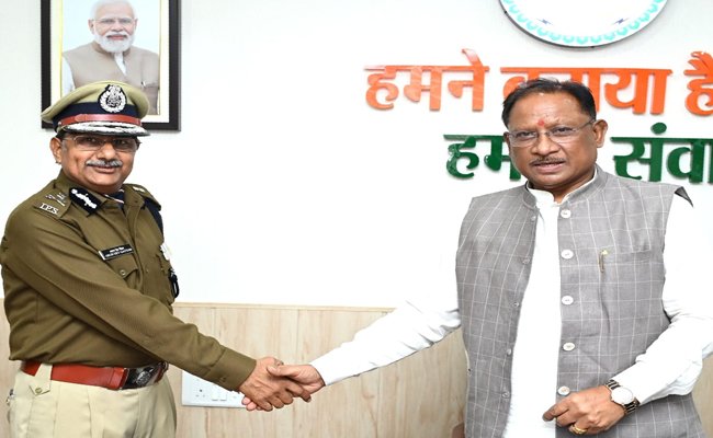 मुख्यमंत्री श्री विष्णुदेव साय से नवनियुक्त पुलिस महानिदेशक श्री अरुण देव गौतम ने की सौजन्य भेंट